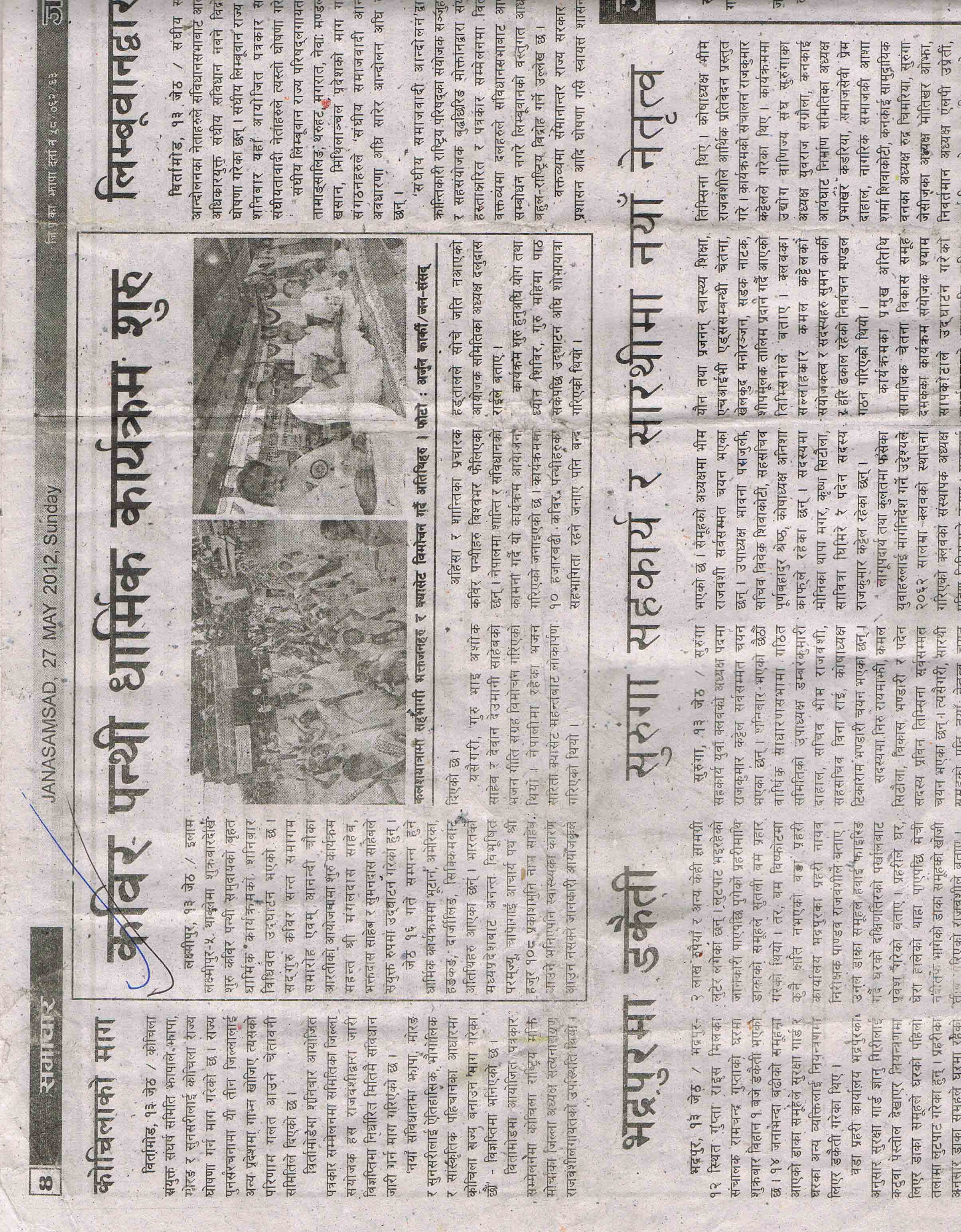 A full-page collage captures dignitaries lighting ceremonial lamps, processions through Laxmipur, and the devotional songs shared by visitors from across Nepal and neighboring regions.
